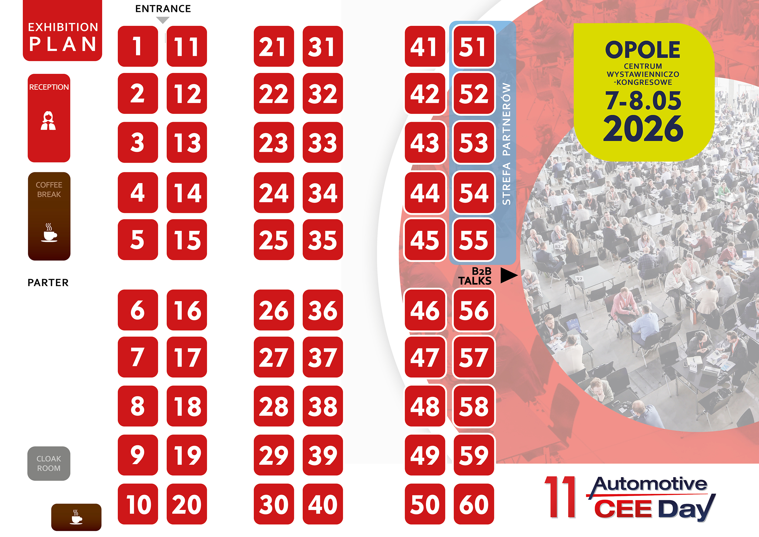 Nie przegap okazji, by znaleźć się w centrum uwagi podczas Automotive CEE Day 2026. Liczba stoisk jest ograniczona, dlatego nie czekaj – zarezerwuj swoją przestrzeń wystawową już teraz i daj swojej firmie szansę na rozwój!